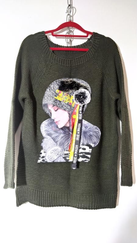 Теплый и стильный свитер из Италии с аппликацией. Пог 49 Пот 46 Поб 46 Др от горловины 67 Ди 66