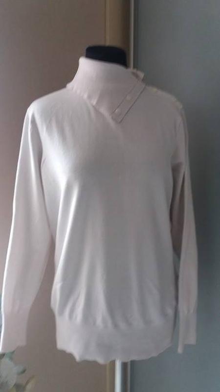 Тёплый красивый белый свитер.кофта Yessika.Интересный воротник.можно носить полностью застегнутым.как гольф или отложным.Трикотаж комфортный и приятный-70% вискоза.Раз.полномерный L Допфото и замеры вышлю.При покупке 3-х моих вещей Отправка Укрпочтой бесплатно для Вас! Выбирайте пжл подарки к своим покупкам!