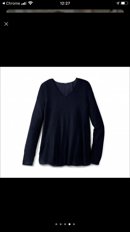 Комбинированная легкая кофта пуловер от тсм tchibo Отличительной особенностью этого пуловера являются две разные стороны: передняя часть и рукава выполнены из легкой и приятно мягкой вязки, задняя часть- воздушная вискоза. Тонкий трикотажный пуловер имеет V-образный вырез и закругленный нижний край, который удлинен на спине и украшен складкой. Рукава ребристые на концах рукавов. Материал: Перед и рукава 50% вискоза, 50% акрил Тканый материал 100% вискоза Цвет: темно-синий Размер : 54-56 ПОГ –65 см, По низу полуобхват-75 см плечи-43 см, рукав- 63 см, длина –79см.