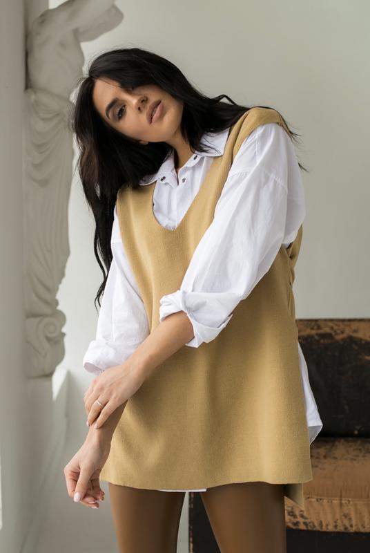 Жилет бежевого кольору Прямого крою з м‘якенького матеріалу Стильний фасон, на зав‘язках Комфортний у використанні One size