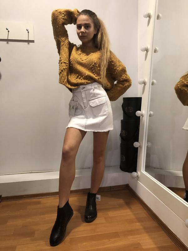 Вязаный свитер(горчичный цвет) Очень крутой материал ,приятный к телу. Одевала пару раз)