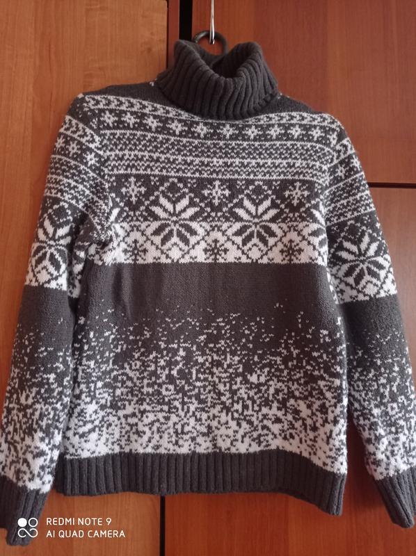 очень теплый свитер с орнаментом , длина 58 ,рукав 58 , пог 47