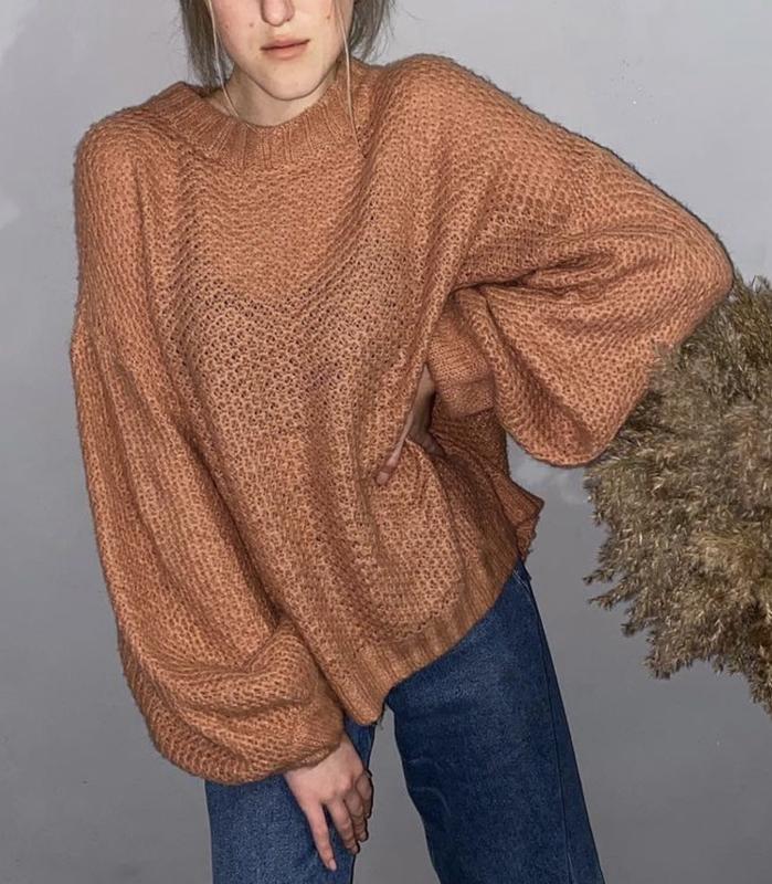 Светр з об'ємними рукавами. Розмір -оверсайз, одягнене на розмір с на фото. Стан супер. У складі шерсть.