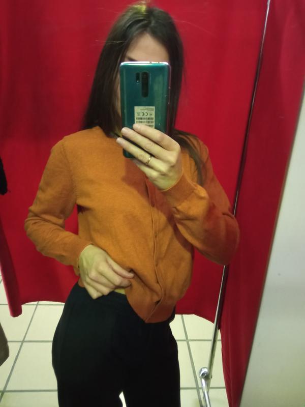 Оранжевый цвет – трендовый в этом сезоне. Он придает яркость вашему образу. Сочетайте оранжевый кардиган с синим, белым, черным и коричневым цветом. Размер на бирке Л,можно М длина 56 грудь 51 рукав 58 плечи 37