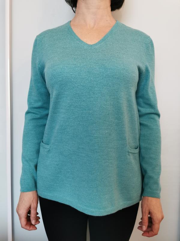 Мягкий и теплый шерстяной свитерок известного немецкого бренда. Шикарный голубой цвет 💙 Абсолютно не колется. Есть кармашки Плечи 40см ПОГ 50см Длина 61см