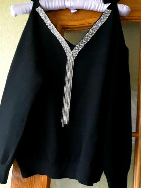 Красивый нарядный свитер с открытыми плечами. Приятный к телу, тёплый. Размер М. Состояние идеальное, без ньюансов. Доставка: Новая почта Оплата: 100% на карту Приватбанка Обмена и возврата нет.
