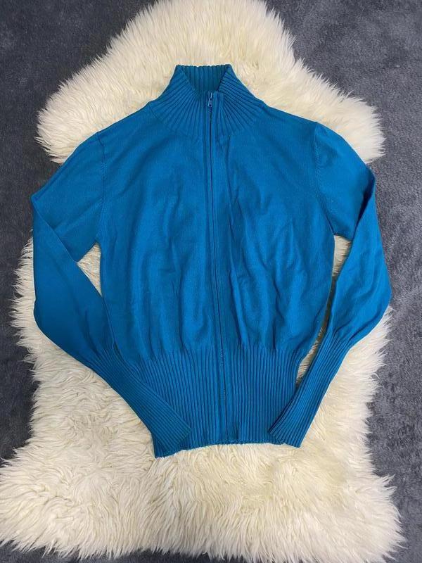 Ярко-бирюзовый свитер-гольф на замок молнию 🦋