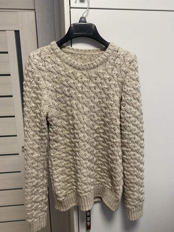 Красивый тёплый свитер, шерсть в составе, красивая вязка. На меня маленький, хорошо будет на размер с. Цена символическая, покупала дороже.