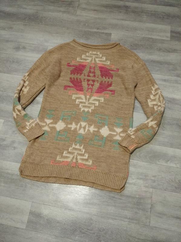 Кофта/свитер женская вязанная коричневая. Замеры: плечи 49 см, рукав 52 см, пог 45 см, пот 42 см, по низ 46,5 см, длина по спине 70 см. Есть дефект, фото 3 розовое пятнышко.