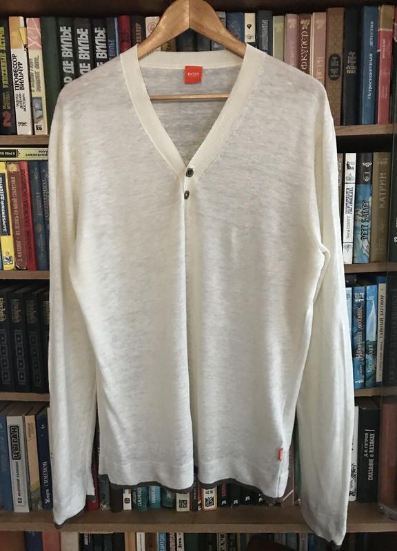 Лаконичный , стильный свитер из натурального льна от всемирно известного бренда HUGO BOSS .Великолепная вещь , качество видно , как говорится «не вооружённым глазом» }}} Цвет кремовый ❤️ длина 73 см ширина между подмышками 58 см в спокойном состоянии, потянется на 62 см ширина ПО в самом низу манжета 53 см , потянется на 62 см плечи 43 см , потянутся на 48 см длина рукава 73 см длина рукава от подмышки 56 см Без дефектов и нюансов , в прекрасном идеальнейшем состоянии , в новом , только без навесных бирок !!!
