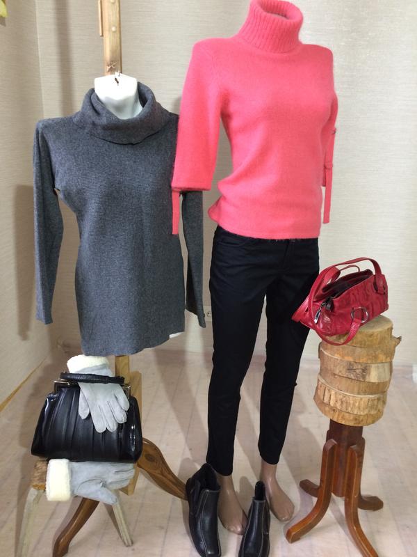 Свитер с высоким горлом шерстяной ангора. Состав великолепный: ангора, вискоза. спандекс. Длина 58 см, пог 44 см, внизу 44 см, плечи 36 см, длина рукава 37 см. Все вещи, представленные на фото, есть у меня в объявлениях .