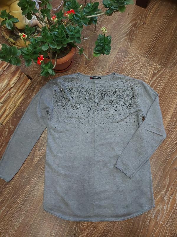 Классный,мягенький женский свитерок с камнями , очень красиво переливаються . Состояние отличное. Замеры на фото .