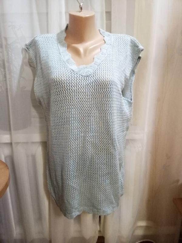 цвет голубой, размер 50-52, замеры:плечи 51, обьем 53, длина 71, 5