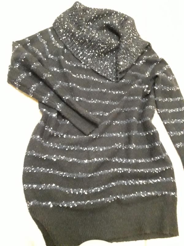 теплый свитер темно синий украшен пайетками довольно длинный хорошо смотрится с лосинами на фото плохо передается цвет