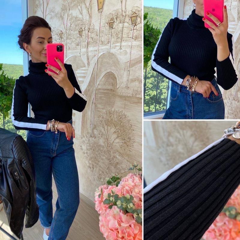 ФАНТАСТИЧЕСКОЕ ПРЕДЛОЖЕНИЕ👍 СТИЛЬНЫЙ, ЭФФЕКТНЫЙ И КОМФОРТНЫЙ СВИТЕР ОБЛЕГАЮЩЕГО СИЛУЭТА С ВЫСОКИМ ГОРЛОМ ИЗ КАЧЕСТВЕННОГО ТРИКОТАЖА МЕЛКОЙ МАШИННОЙ ВЯЗКИ ДЕКОРИРОВАННЫЙ ОРИГИНАЛЬНЫМИ КОНТРАСТНЫМИ ЛАМПАСАМИ ПО РУКАВАМ РАЗМЕР УНИВЕРСАЛЬНЫЙ 42-46 КОД 0852 🍃 ЦЕНА 215 ГРН