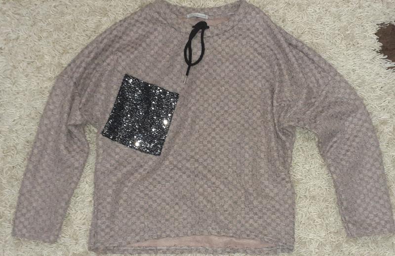 Свитер в идеале...привезённый с Польши...с люриксовой ниткой...на размер 46-48...у меня 50...то маловат.взади идёт заниженной.