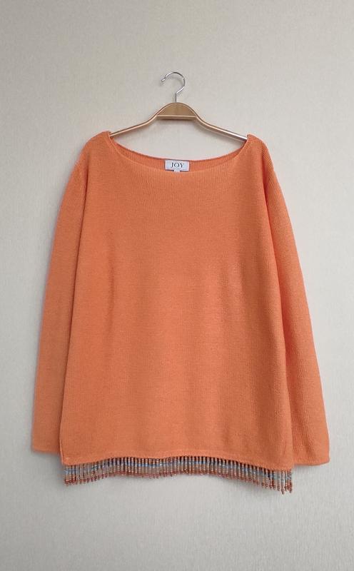 Эксклюзивный винтажный свитер с боковыми разрезами (см.фото #4) и отделкой по нижнему краю из бусин (деревянные + "кошачий глаз"). Прямой крой. Изнаночная вязка. Размер указан 40/42. Фактические замеры в расслабленном состоянии (не на теле): - плечи - 47 см; - полуобхват груди - 55 см (+ тянется); - длина рукава - 57 см; - длина изделия (с учётом бахромы из бусин) - 67 см. Приятной Вам покупки!)