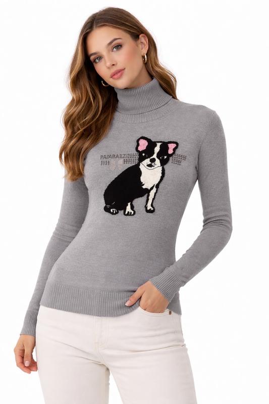 Свитер paparazzi женский тонкий трикотажный с горлом с принтом «собака» s, 42 серый