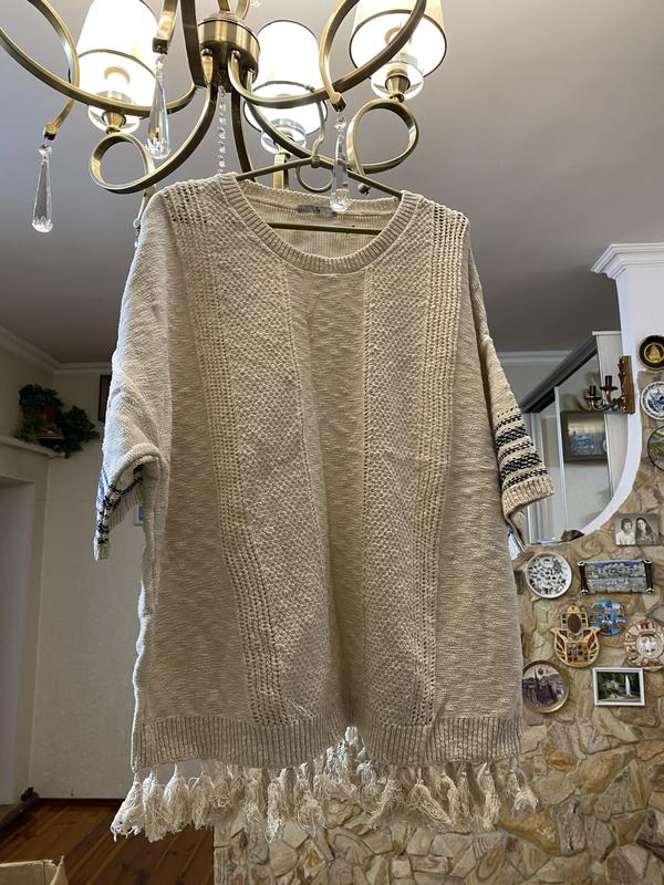 Свитер - пончо с бахромой в стиле бохо
