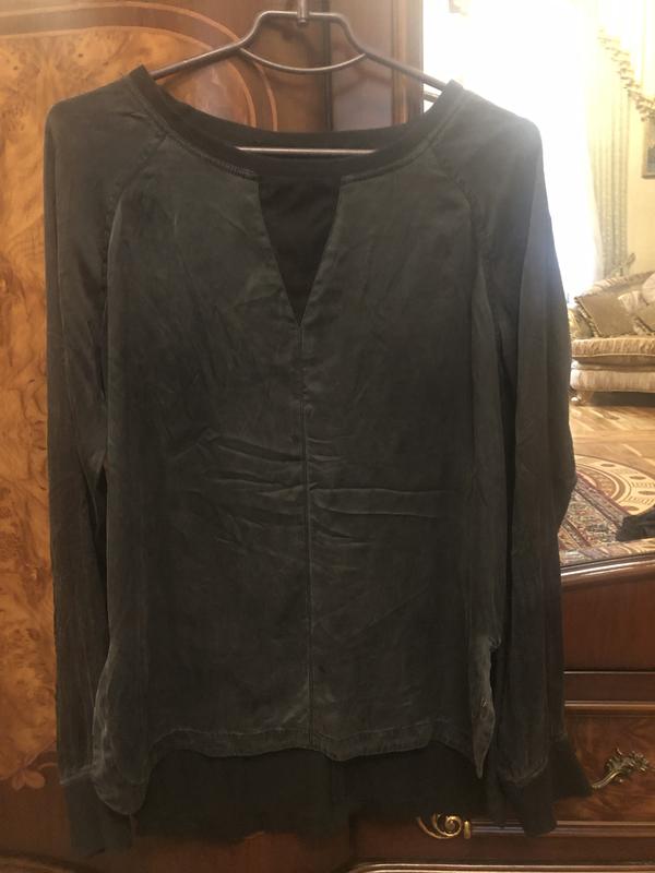 Кофта тонкая, летняя. Качественно сделана. Впереди шёлк вставка сетка. На спинке котон, тоже со вставкой для прозрачной спинки. Манжеты на рукавах. Приятная к телу.