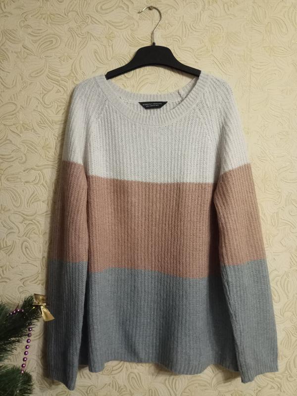 Свитер 48-50 р-ру.,ную трендовую широкую полоску из молочного,серого и цвета пудры.Очень приятный и мягкий на ощупь. Замеры: рукав от горла 75 см; об.грудей 55 см.; стегна 62 см.; долж. изделию от плеча 66 см. Перешлю после 100% оплаты на карточку. Отправлю Новой или Укр.почтой. По дополнительной информации обратитесь. Смотрите мое другое объявления.