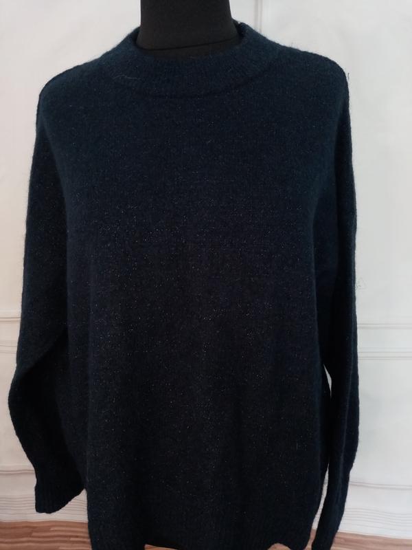 Свитер Н М с методической ниткой из акрила шерсти и махера темно синего цвета пог 60см пот 60см извините по низу 120см длина по спине 74см рукав приспущен длина рукава 60см пор 17см