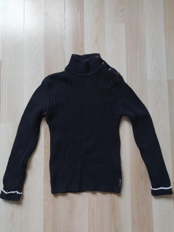 Оригінальний светр Армані темно-синього кольору. Збоку комір на кнопках. 100% cotton