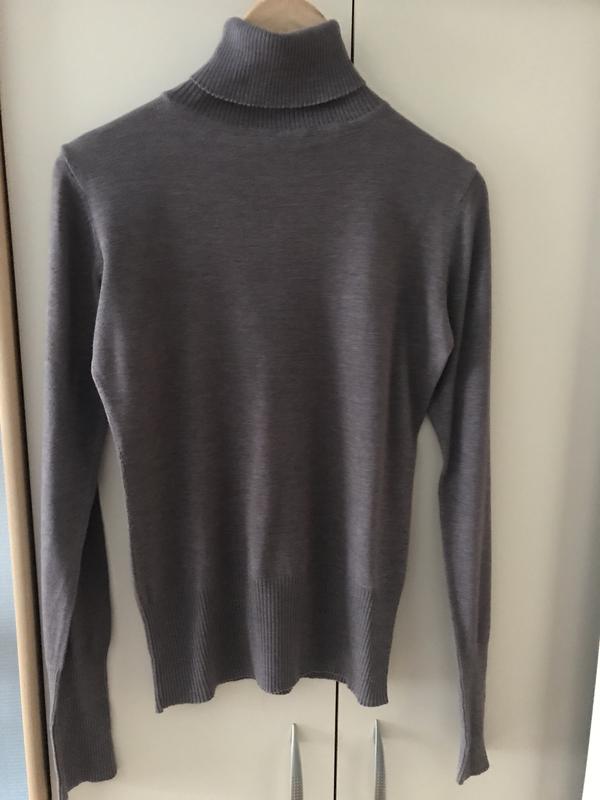 Гольф, свитер на широкой резинке и удлиненным рукавом. Бирка срезанная, но в составе есть катон. Очень приятные к телу, цвет ещё красивее чем на фото. Размер указан С но подойдёт и на М. Сзади есть небольшой дефект, это видно на фото 3
