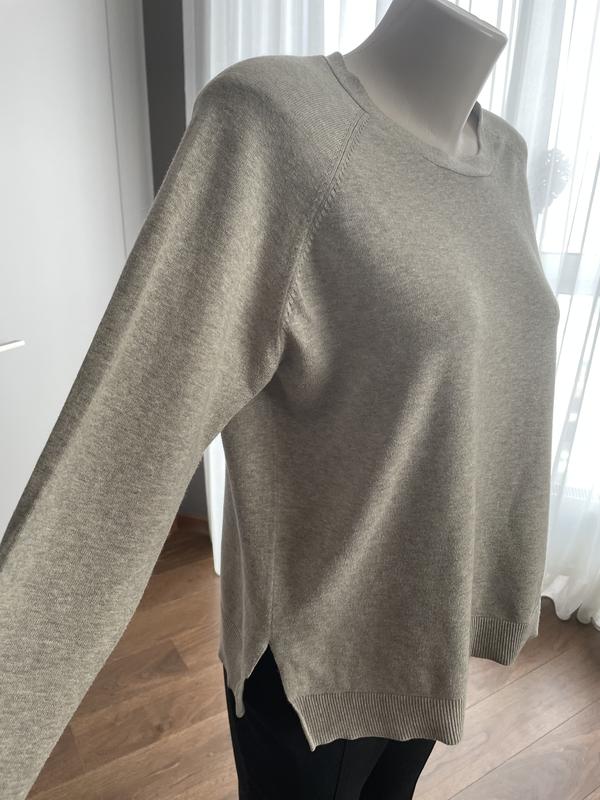 Базовый универсальный котоновый свитер дорогого шведского бренда. В отличном состоянии, без дефектов. Размер указан 40, но носила на С как оверсайз. Цвет - серо-бежевый меланж.