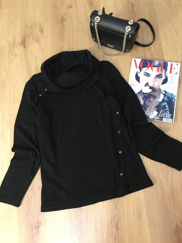 Стильный свитер с отворотом, который можно моделировать и выкладывать в разных вариантах. Замеры: Плечи-46 см ПОГ-55 см ПОТ-50 см Дли рукава-62 см Длина-65 см
