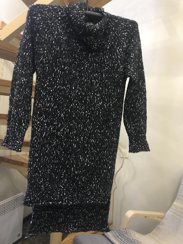 Очень красивый, современный свитер -туника, он как КАЛЬЧУГА { грубая вязка} сзади чуть длинен чем впереди . Торг есть.