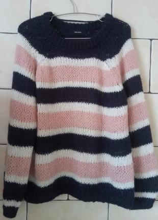 В идеальном состоянии весенний джемперок модной расцветки и фасона. Крупная вязка. Акрил и нейлон. Цвета - синий, розовый, белый. Замеры - рукав от горловины с плечом 76 см (на мой рост 170 прекрасно), ПОГ 57, длина 65. Мои параметры рост 170, грудь 96, талия 74, бедра 96.