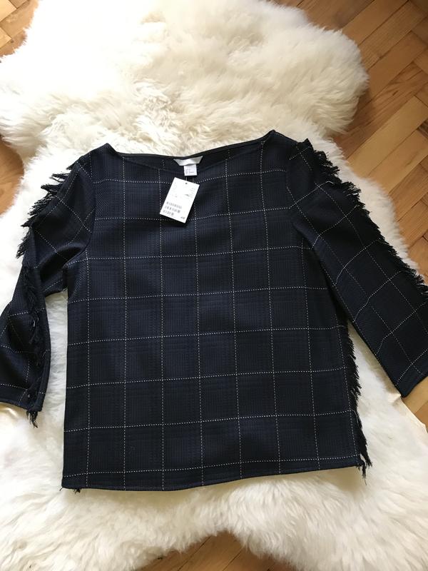 Кофта светер hm, твідовий жакет, твід, кофта блуза з бахромою, бахрома, баска , гусяча лап...