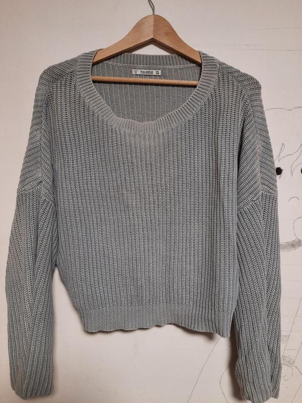 Вкорочений в'язаний светр з вільними та широкими рукавами