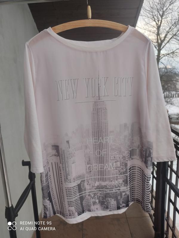 Довжина 64см, плечі 38см груди 51см по низу 54см рукав 43см Оригінальна кофта з малюнком Нью-Йорку, перед шифону зад трикотаж , нажаль всі бірочки зрізані(