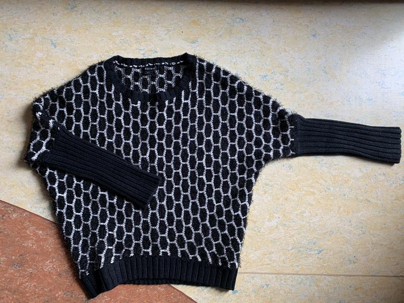 Модний светер крою ',летюча миша'. Довжина светра по спині-63 см, переду-57 см, рукава-66, півобхват по лінії таліі-50 див. Написаний розмір S гарно дивиться і на М.