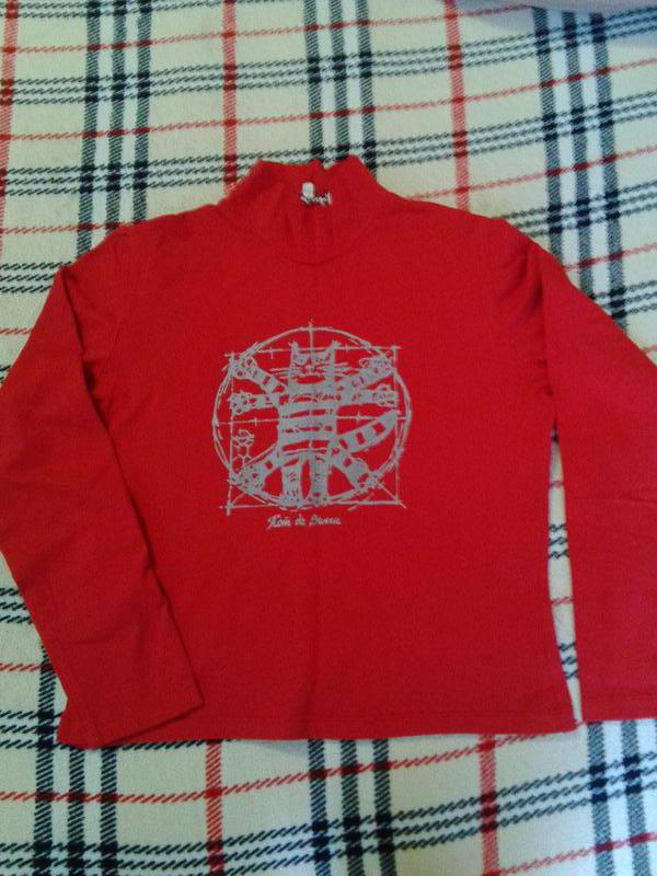 Трикотажный голь с прикольным принтом. Пог45,Пот40,Дл50,Рукав53. Цвет красный. Размер 44-46