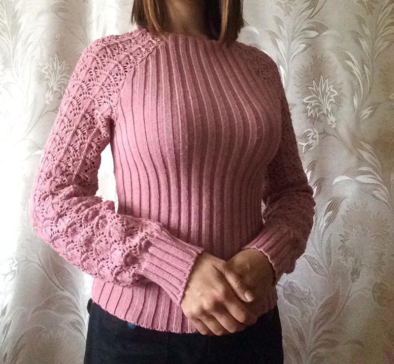 Светр колір пудра, розмір 42-44, у відмінному стані, носила мало, довжина 50 см, довжина рукава від горловини 74 см., на об'єм грудей до 85 см., м'який,не колеться.