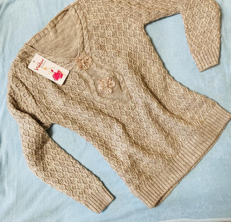 Нарядный и в тоже время повседневный свитер. Размер универсальный (42-46). Замеры: длина рукава 54 см, длина свитера по спинке 61 см, пог 42 см, пот 38 см