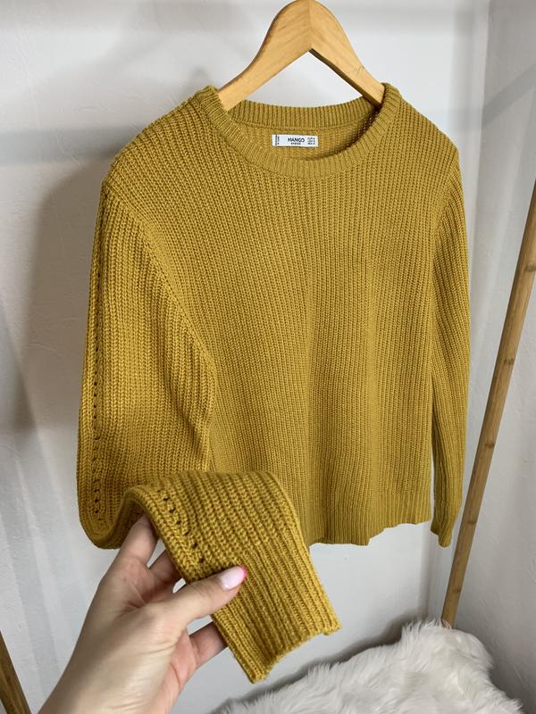 В'язаний светр Розмір вказаний на бирці М Довжина светра 55 см Довжина рукава від плеча 57 см Ширина в грудях 45 см Внутрішня бирка зрізана