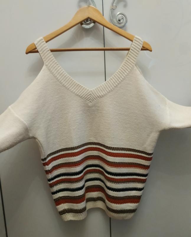 Свитер, размер 10, на фото девушка меньшего размера. Очень красиво смотрятся с джинсами.