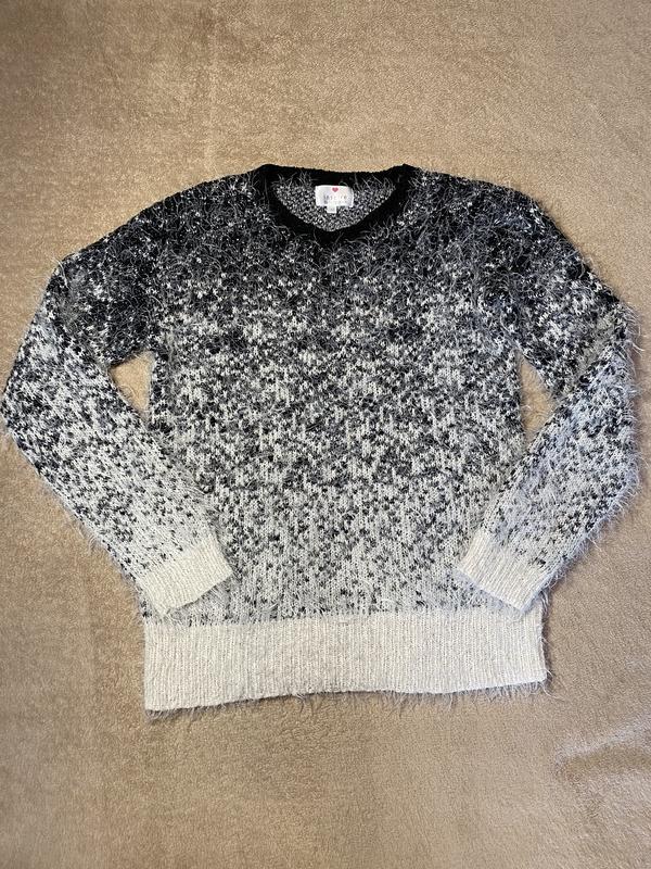 Свитер травка Черно-белого цвета Размер 10/L Тянется ПОГ 50 Длина рукава 58 Длина от воротника 64