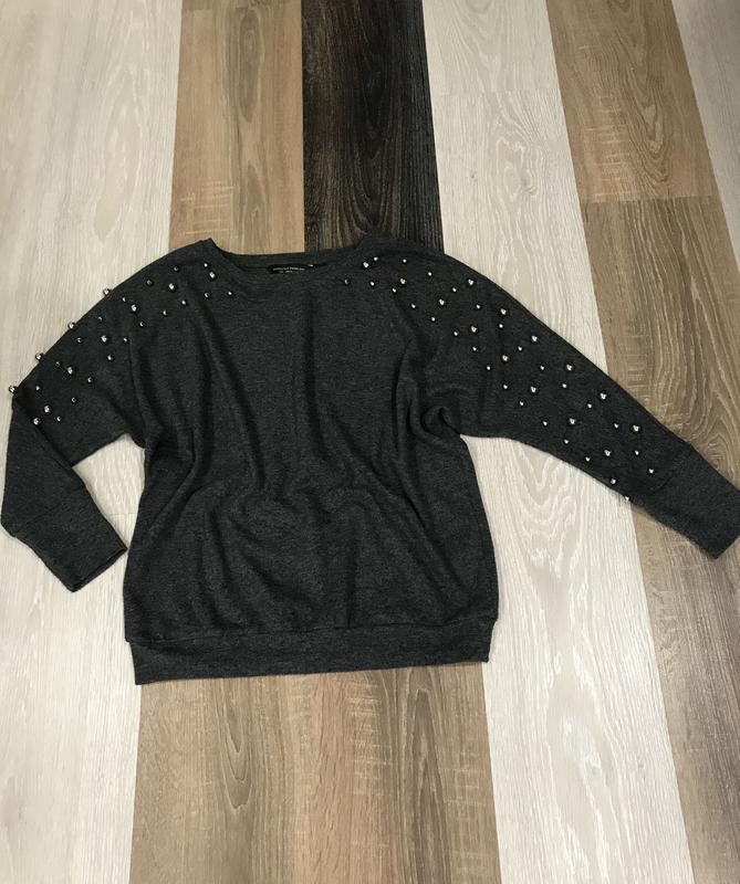 Светр з м'якої пряжі ,прикрашений великим бісером.Ді 60,дл рук від горловини 62,ширина по низу 45