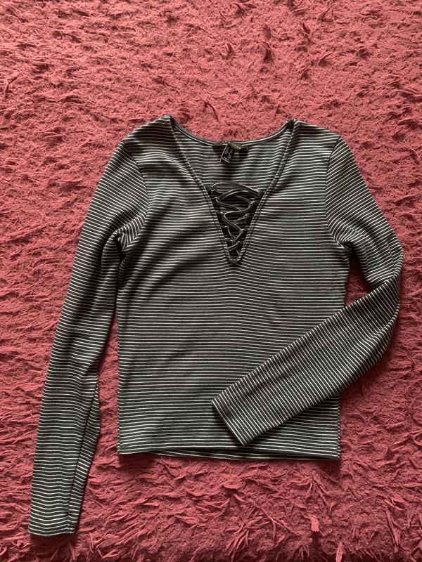 Кофточка в полоску впереди переплеты очень приятная к телу и удобная .Без дефектов ,состояние нового