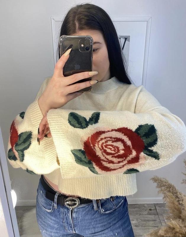 Замеры свитера с розами: Полуобхват груди- 60 см Длина изделия- 47 см Длина рукава- 60 см