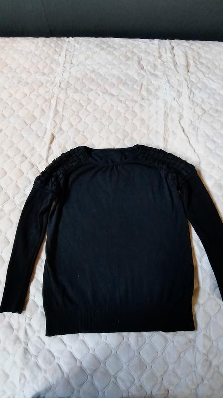 Свитерок черного цвета в очень хорошем состоянии.Размер 44.Рукава лапша декорированы узором плетенка.