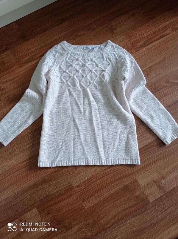Свитер теплый с блестящей нитью,на наш 42 размер,цвет молочный,на фото был сложен,надо погладить