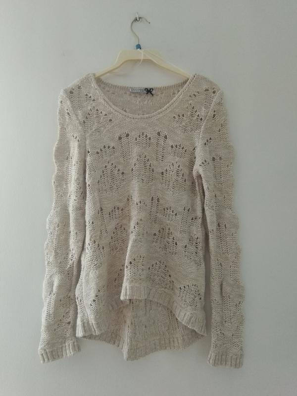жіноча ажурна кофта Stradivarius бежевого відтінку,розмір S/M. склад 53% коттон,47%акрил. довжина 67см рукав 69см