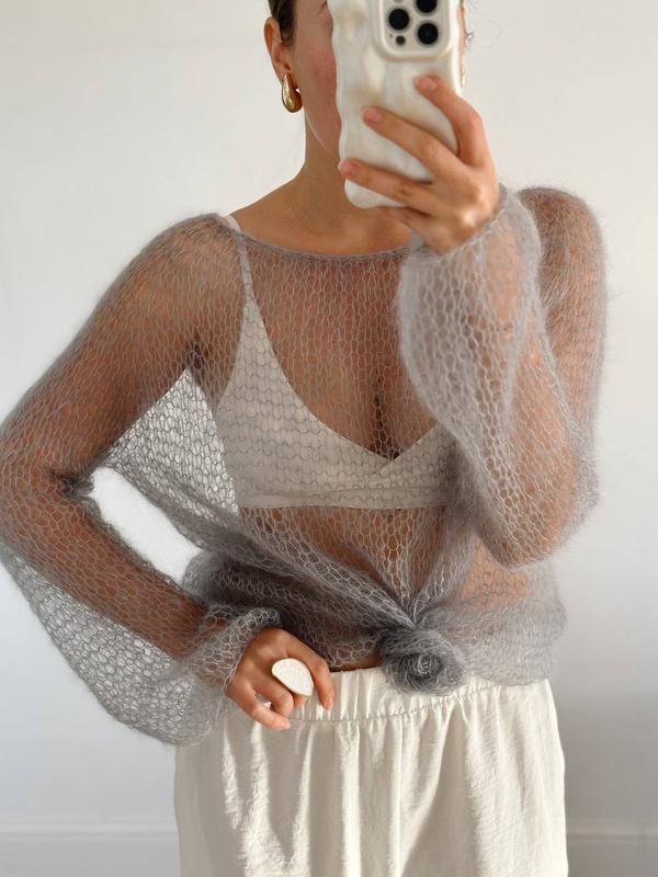 Повітряний, ніжний та легкий светр-павутинка. Склад : кід мохер/шовк. Його можна носити зі спущеними плечем, з сукнею і під джинси. Універсальна і комфортна річ на будь-який сезон.