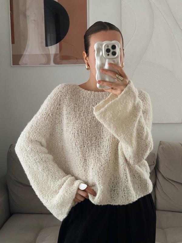 Мʼякий, ніжний та легкий светр. Склад: 80% альпака, 15% вовна, 5% поліамід. Його можна носити з сукнею і під джинси, ідеально підійде до Ваших стильних образів. Доповніть його бавовняною майкою або топом у якості нижнього шару. Універсальна і комфортна річ на будь-який сезон.